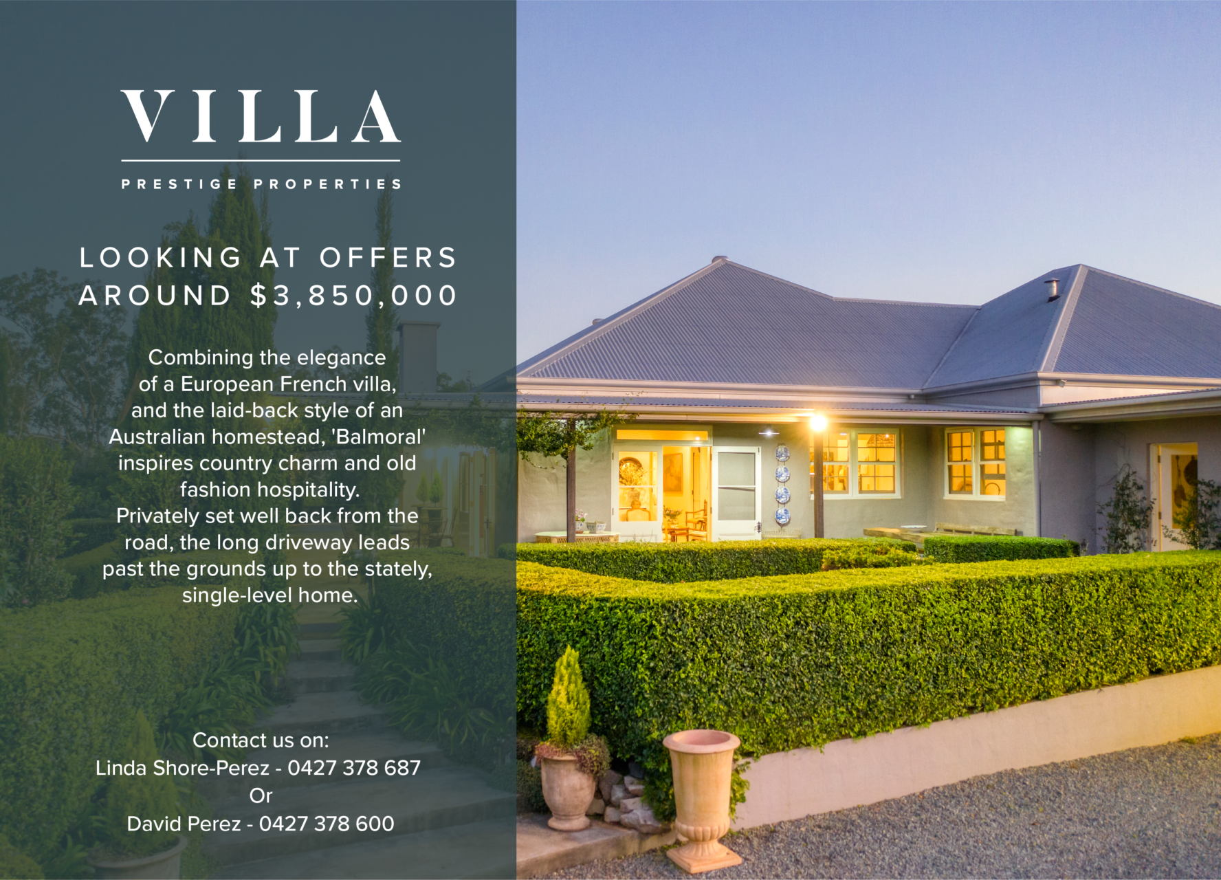 Long lazy, lunches on the verandah overlooking your country estate in one of the best places to live in the world!!
