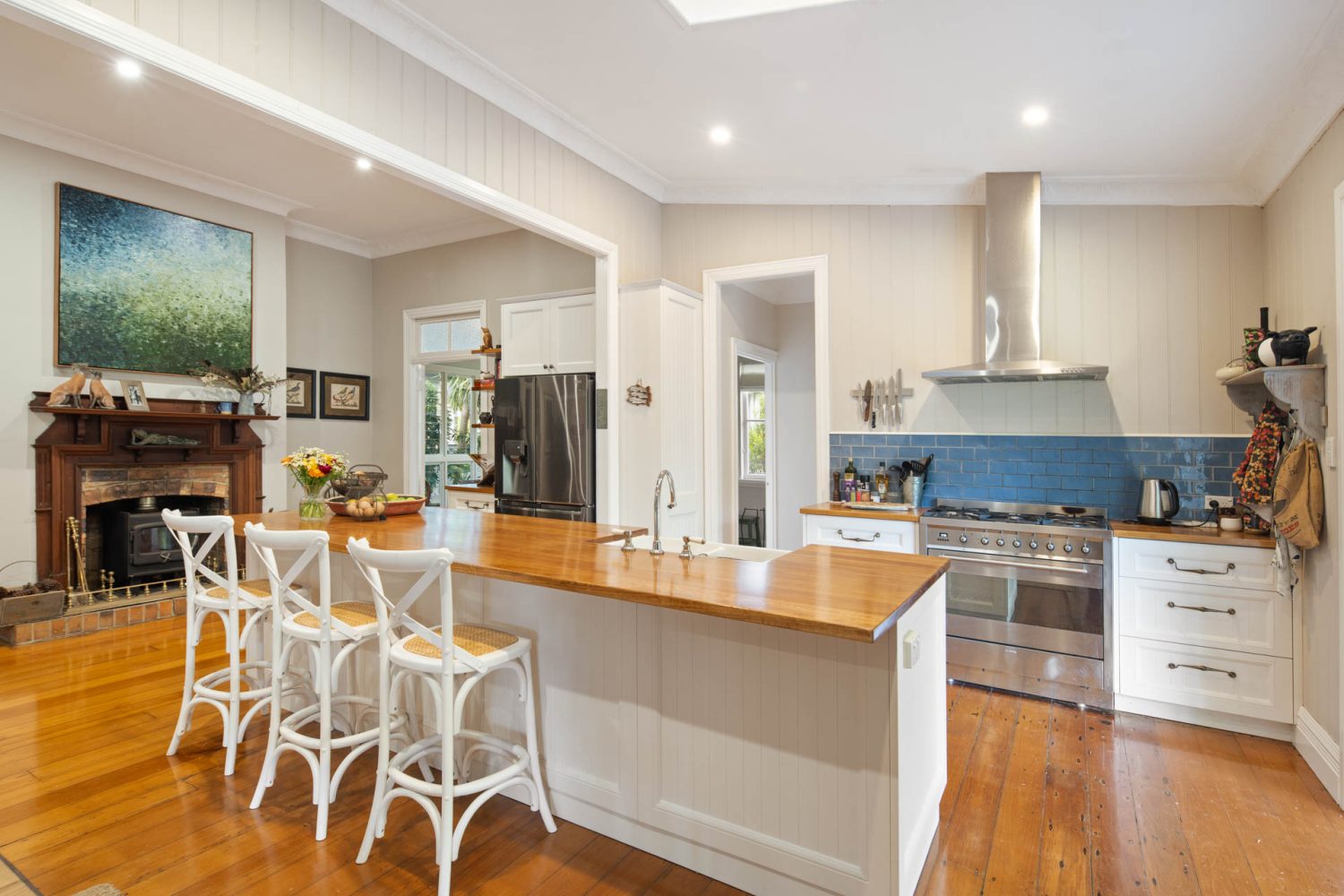 * A chef’s kitchen with cast iron stove, French doors, heritage fittings, and wide verandahs, perfect for entertaining