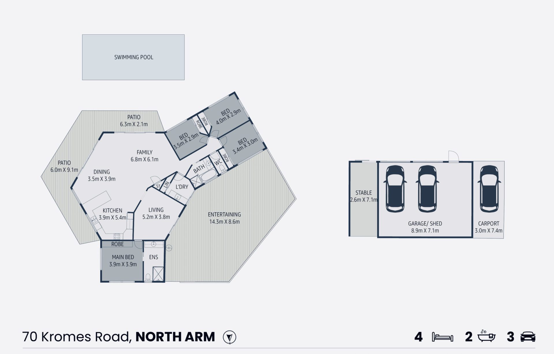 For those seeking a working hobby farm or equestrian haven, the infrastructure here is exceptional. From stables and farm sheds to and large arena, all the hard work has been done. The land is well fenced, watered, and productive, with mature fruit trees and plenty of space to expand.