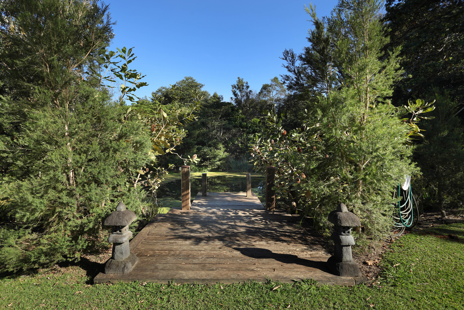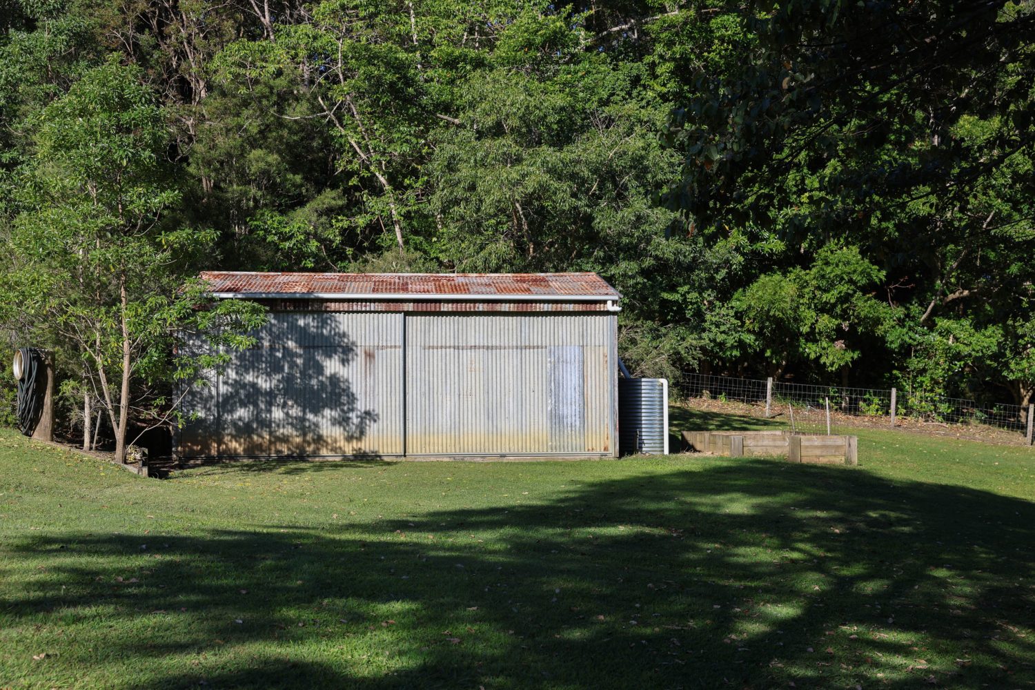 The estate features expansive lawns, mature fruit orchards, and irrigated raised vegetable gardens. A large shed offers potential as an artist’s studio or creative workspace. A serene billabong with jetty or meditation deck completes the peaceful ambience.