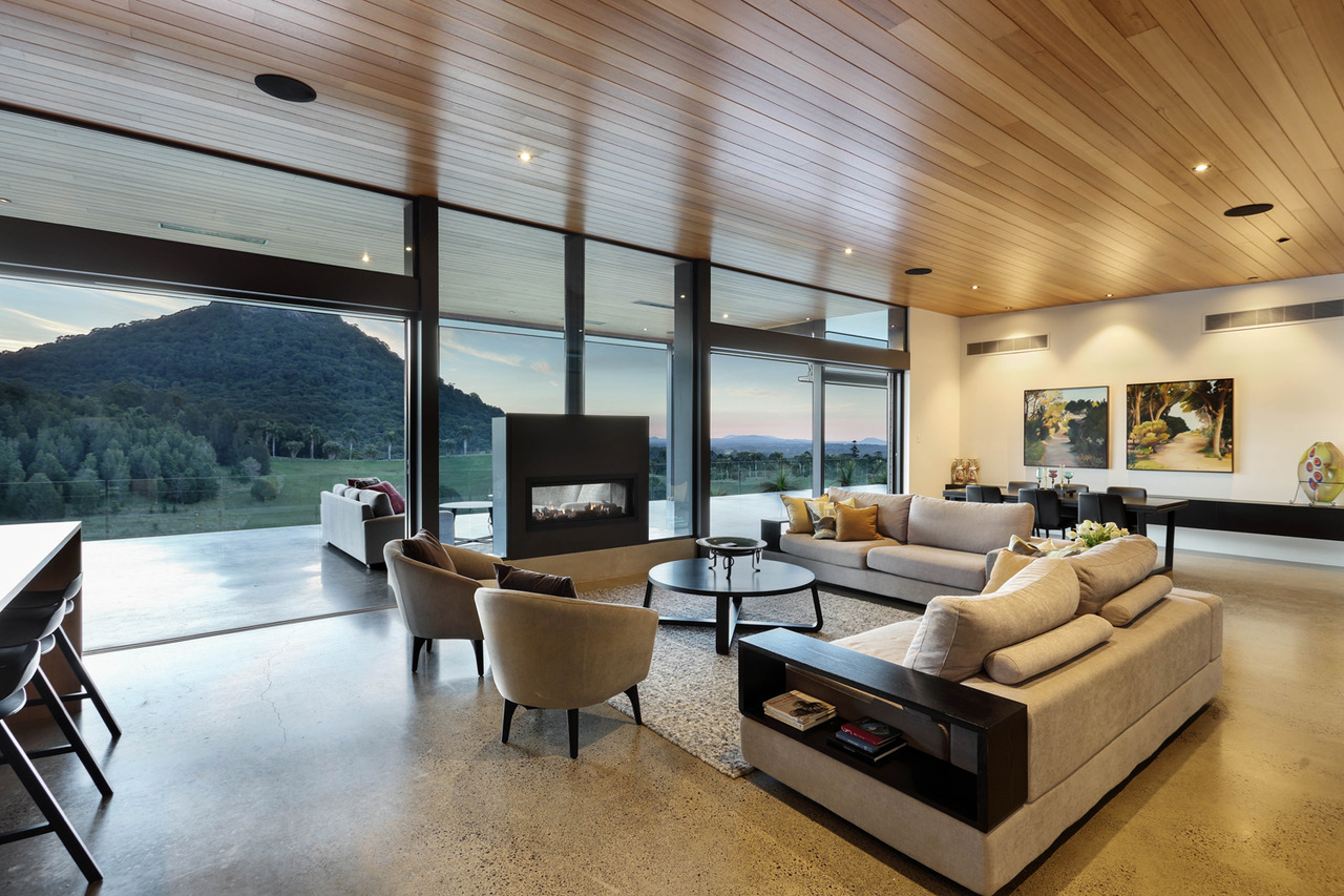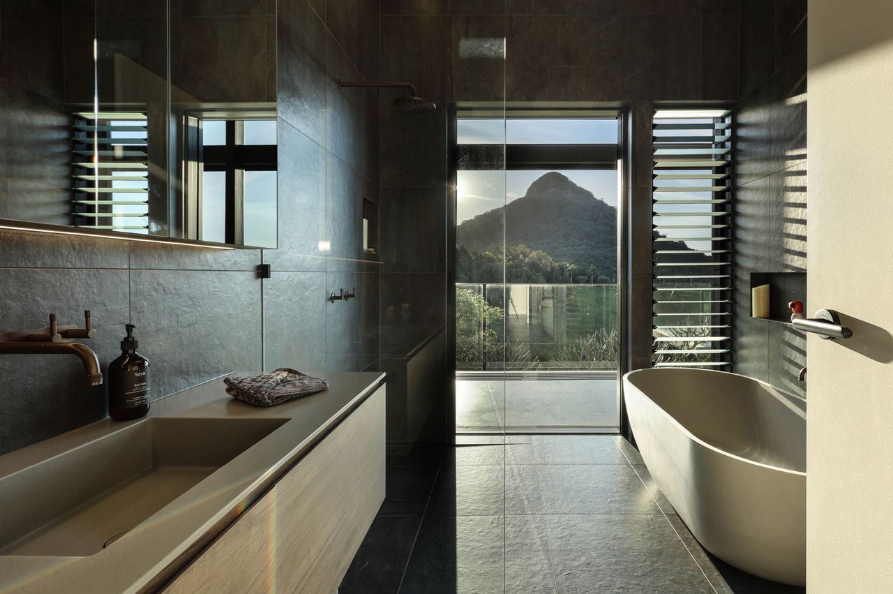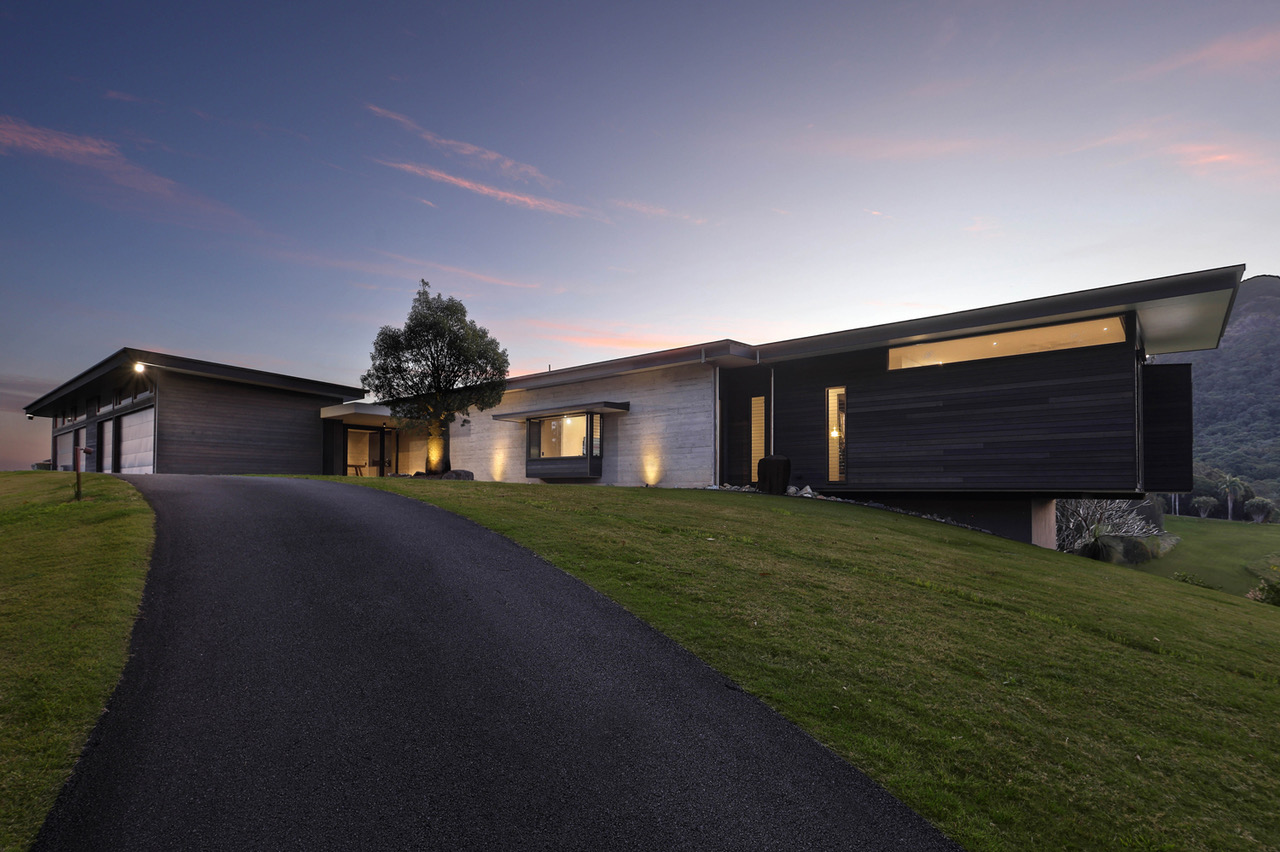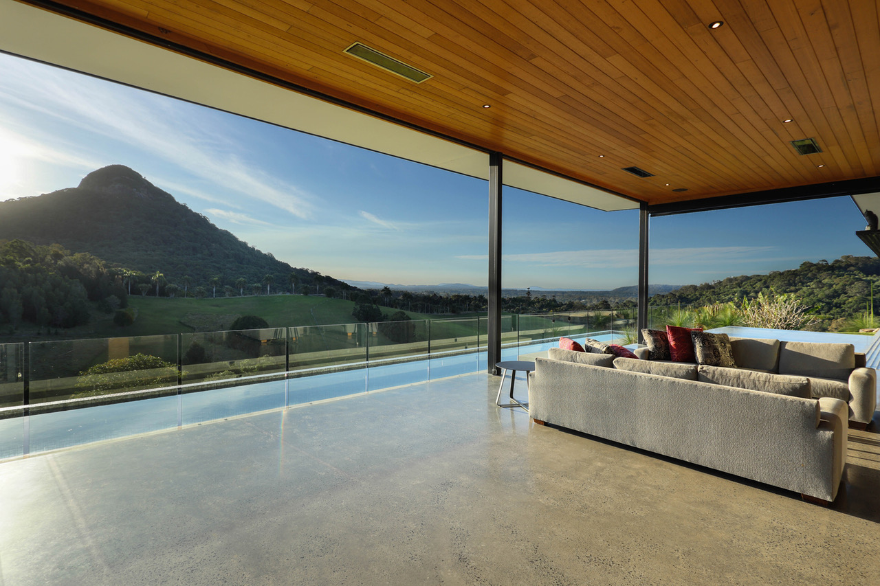 Designed by acclaimed architect Tim Ditchfield, this modernist home is a statement of timeless architecture, expertly crafted to harmonise with its natural surroundings. Constructed from a palette of concrete, block work, and timber, the residence captures light, breezes, and panoramic views across the hinterland in perfect balance.