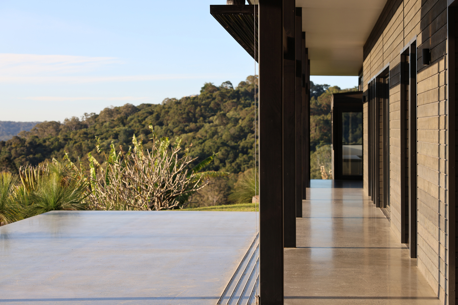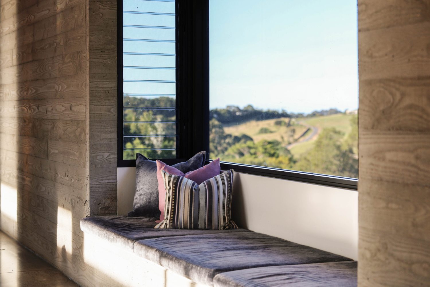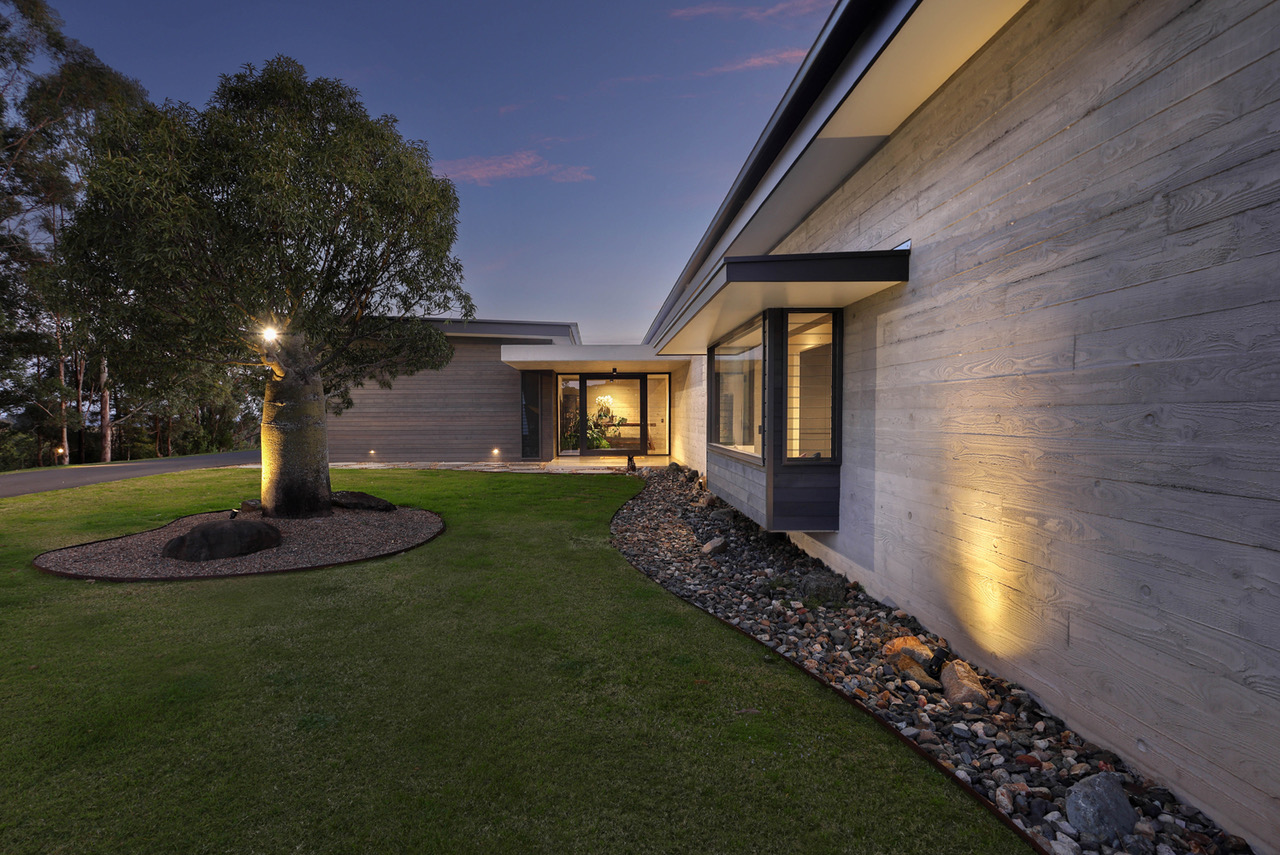 Designed by acclaimed architect Tim Ditchfield, this modernist home is a statement of timeless architecture, expertly crafted to harmonise with its natural surroundings. Constructed from a palette of concrete, block work, and timber, the residence captures light, breezes, and panoramic views across the hinterland in perfect balance.