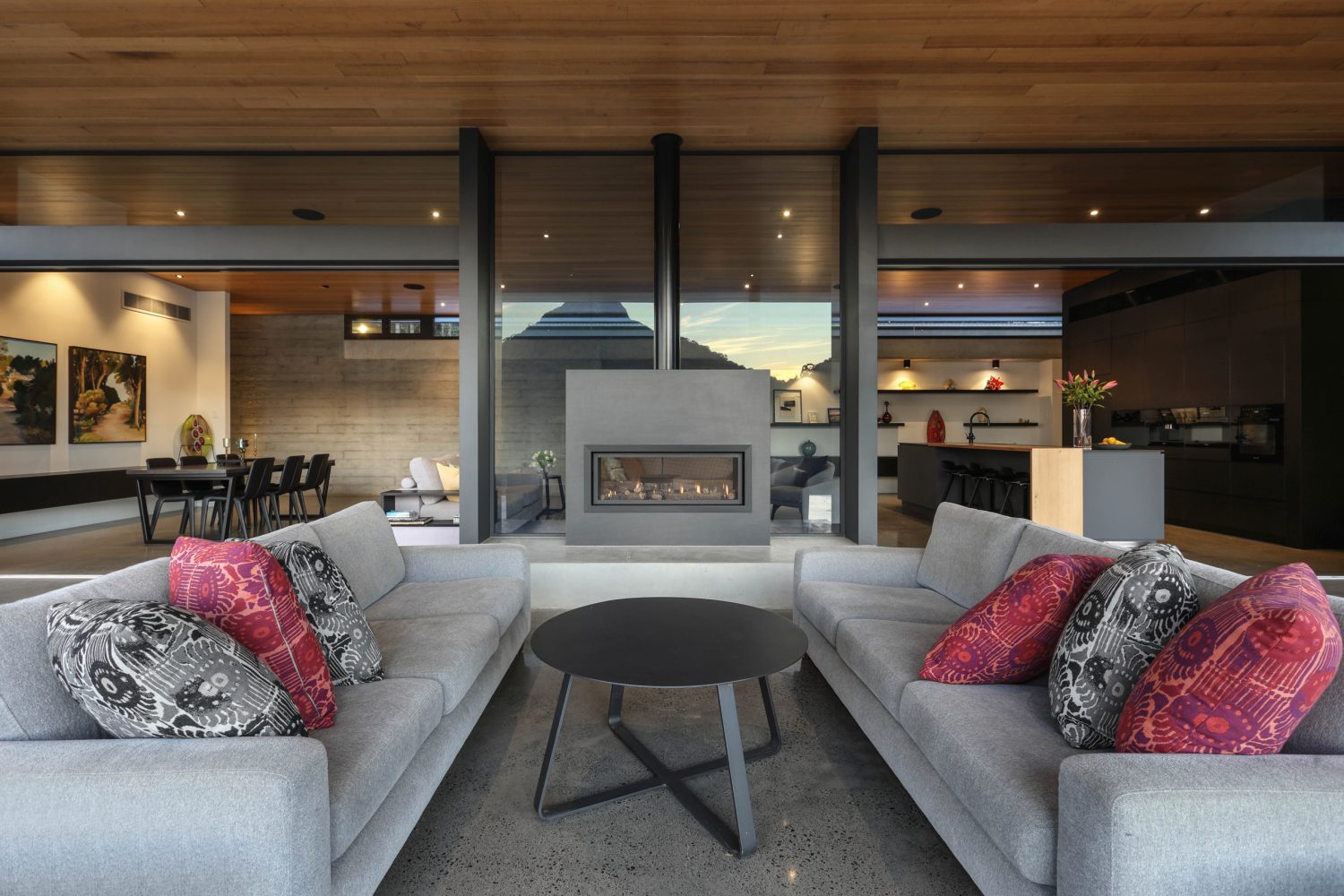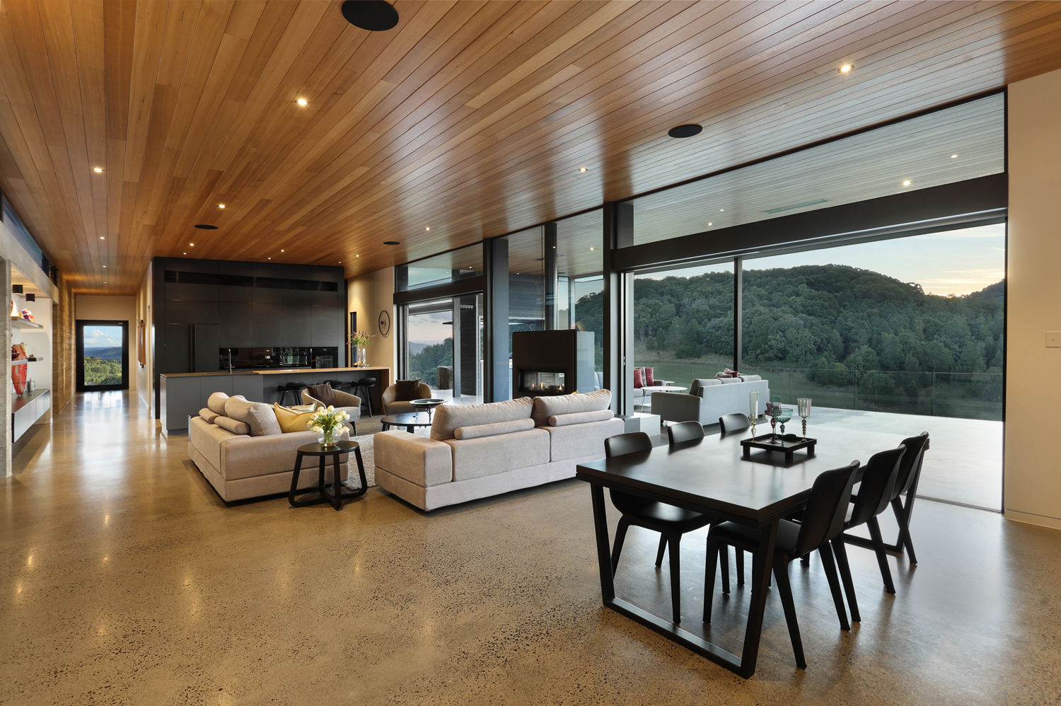 Designed for both grand-scale entertaining and intimate daily living, the open-plan design integrates versatile indoor and outdoor spaces. Picture long lunches by the pool, cosy evenings by the fire, or lavish family celebrations — all set against a backdrop of breathtaking 180-degree views.