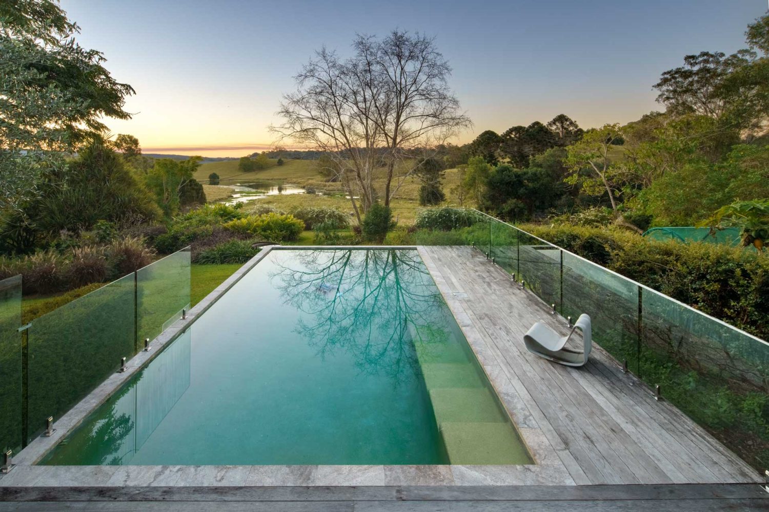 Magnesium infinity style pool 5mt x 9mt overlooking the views of a large lake with incredible bird life including black swans.