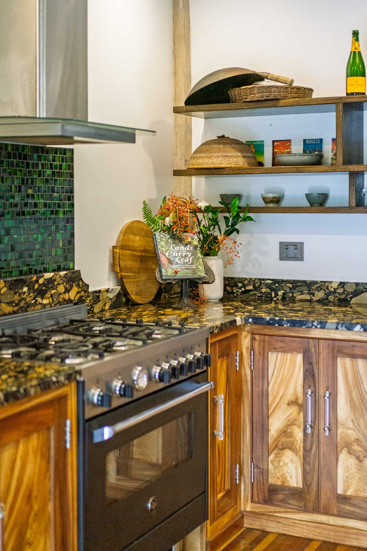 Handcrafted kitchen with Camphor Laurel & Black Wattle cabinetry, Marinace granite benchtops, 900mm gas cooktop