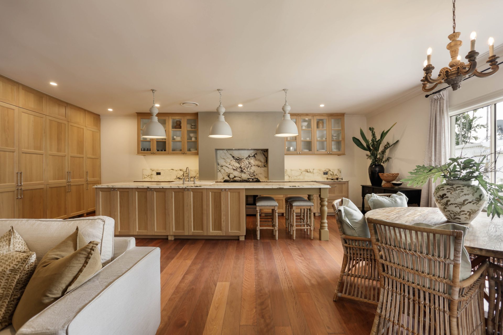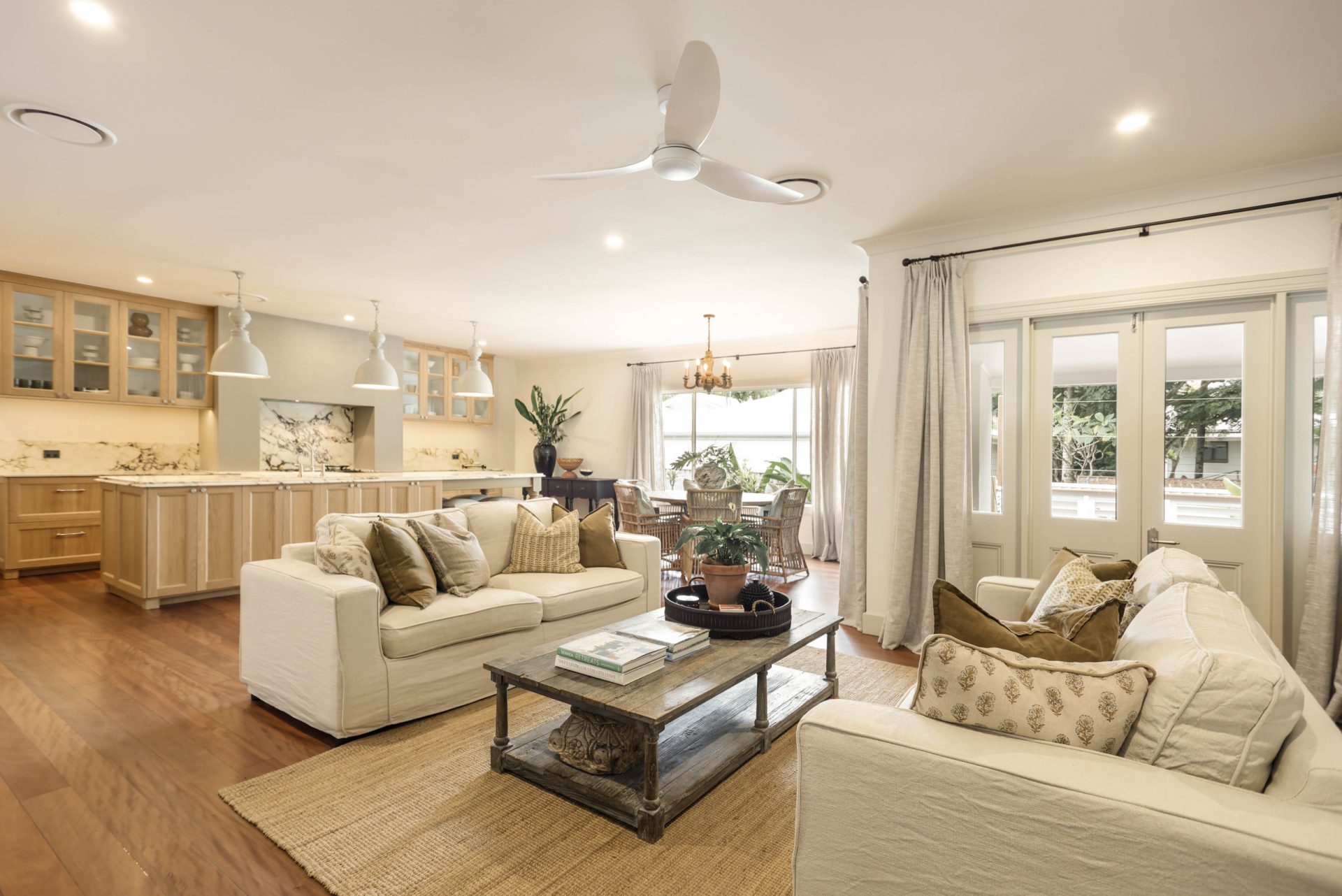 Coming Soon! Set on an expansive 810sqm block just ten homes from the river, this beautifully renovated residence delivers refined, gracious living. Architecturally designed to enhance space and flow, the home spans just over 200sqm, featuring solid wide-board Brush Box flooring and 2.7m ceilings throughout. Premium European appliances complement honed marble bathrooms, while the kitchen is a true centrepiece with striking Viola marble benchtops, solid European oak cabinetry, and a Falcon Professional oven.